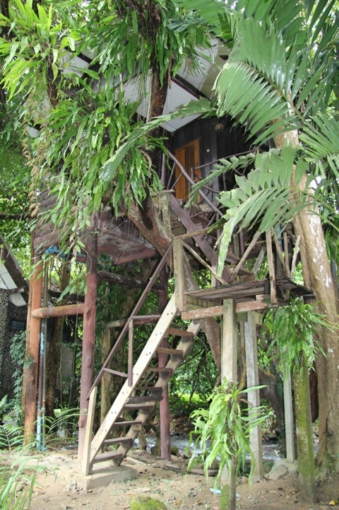 Wir bezogen unser Baumhaus mit Terasse zum Fluss und diskutierten, welche Tour wir am Folgetag bestreiten wollen. Der Park ist ca. 4500 qkm groß mit einem gigantischen Stausee und bietet etlichen tropischen Tieren wie Gibbons, Makakken, Schlangen, Insekten, Nashornvögeln, 400 verschiedene Vogelarten und mutmaßlich auch Elefanten und Tiegern ein Zuhause. Von Rafting, Elefant-Trekking, Jungle-Tour und Kajak auf dem See, wird nahezu alles angeboten. Hier ist es dennoch nicht überlaufen, da nur einige westliche Touristen, diese Region den zahllosen Inseln und Stränden vorziehen.