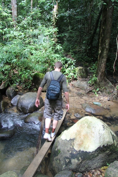 Wir haben uns entschieden, die 14km lange Dschungeltour zu machen. Ein gemütlicher Spaziergang – vorbei an Wasserfällen und begleitet von zahllosen Tieren. Für den Trip brauchen wir natürlich auch keinen Ranger oder Führer – wir brauchen keine Begleitung, wir können das allein – schließlich hören sich 7km Hin- und 7km Rückweg ja auch nicht so dramatisch an.