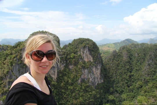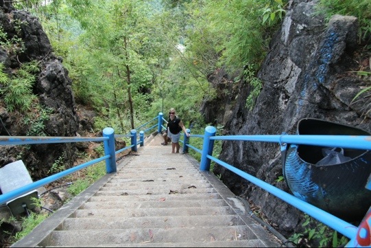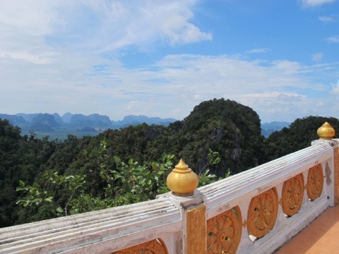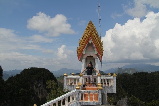 Erst haben wir in unserer kleinen Pension in Krabi Stadt eingecheckt und uns einen Roller für den Tag gemietet um unsere strapazierten Füße mal zu schonen. Dann ging Richtung Wat Tham Sua in dem sich die Tigerhöhle und ein Karstberg mit Gipfelbesteigung befindet. Tigerhöhle ganz entspannt mitgenommen und dann wurde im Reiseführer die 1273 Stufen hohe Gipfelbesteigung als Verdauungsspaziergang angepriesen …