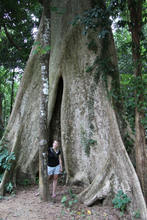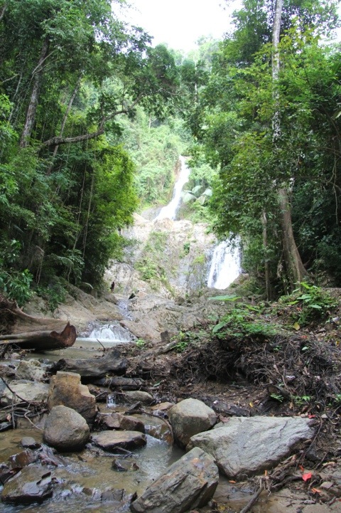 Am Naturreservart angekommen, empfängt uns ein schön angelegter Park mit einer kleinen Dusche aus der Wolke über uns. Über einen kleinen Dschungelpfad geht es hoch zum Wasserfall. Giant Trees und oberschenkeldicke Bambushölzer wachsen am Wegrand und dann kommt das große Rauschen. Erst ein kleiner Pool, nach der Biegung der erste Fall, gefolgt von einem zweiten. Eine traumhaft Erfrischung unter der Naturdusche.