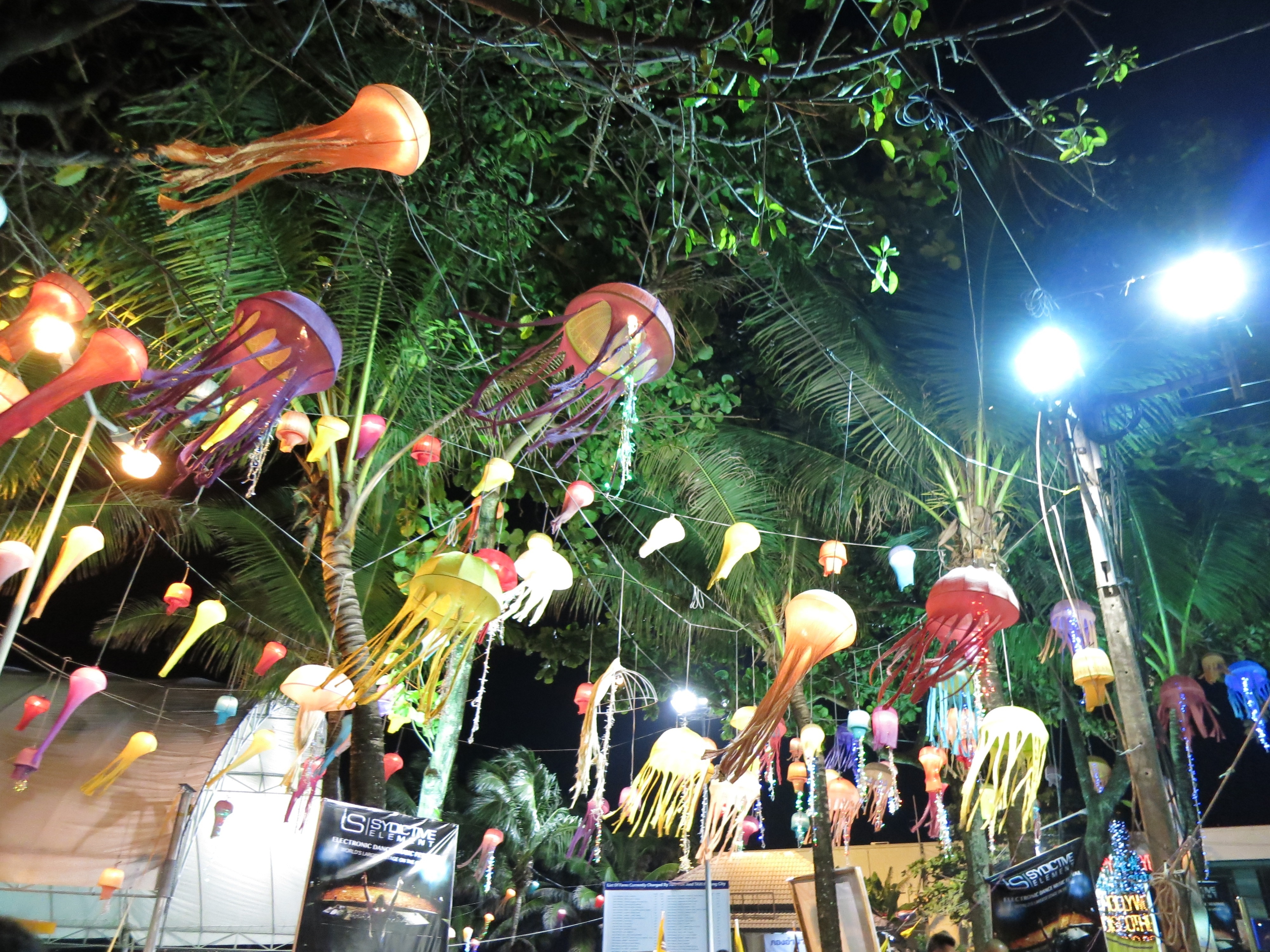 Der Strand und die ganze Bucht war eigentlich eine einzige riesen große Party mit mehreren überdimensionierten Video-Leinwänden, Boxentürmen, Laser- und Lichtshows und das übertraf sich dann auf mehreren Strandabschnitten gegenseitig. Unter anderem fand dort eine Party mit der weltweit größten DJ-Light-Show-Installation auf einem schwimmenden Ponton statt. Wir genossen das Spektakel, was sich dort in der gesamten Bucht und bot. Überall waren Boote, ein großes Kreuzfahrtschiff hatte etwas außerhalb auf dem Meer seine Anker geworfen und der Himmel war durchzogen von den brennenden Himmelsballons. Es war etwas für die Augen, die Ohren und heute – am Tag danach – auch etwas für den Kopf dabei.