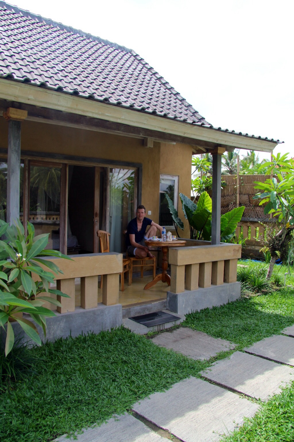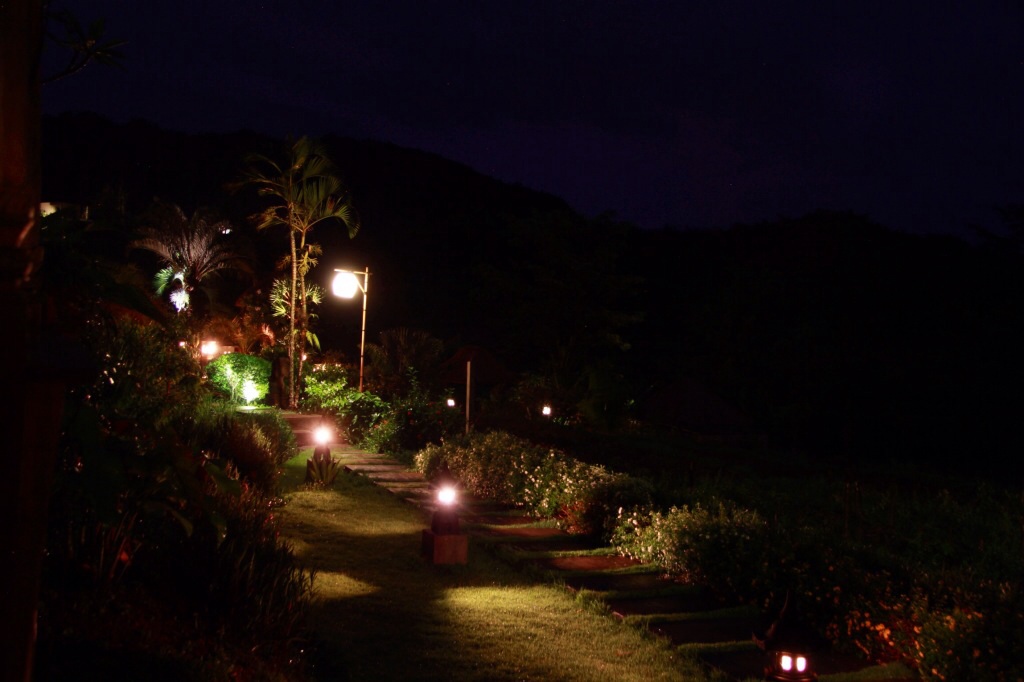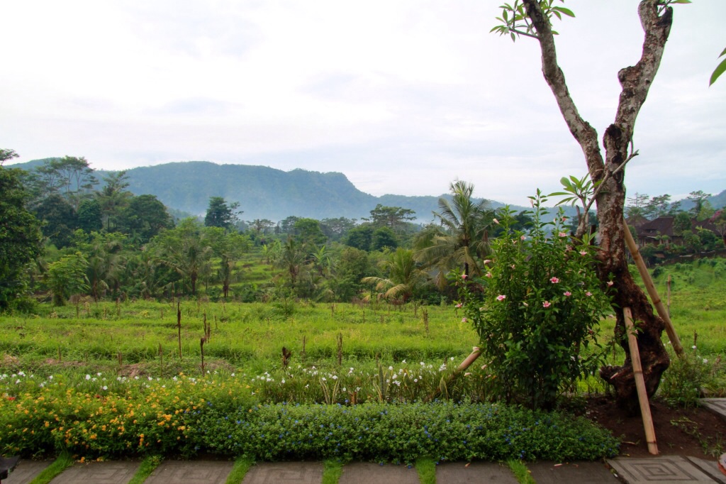 Zur Begrüßung in Sideman haben wir erst mal einen Sturzbach abbekommen und unseren kleinen, sehr feinen Bungalow bezogen. Anschließend sind wir in den Infinity Pool mit Blick auf die Reisterrassen gehüpft. Mittlerweile fast dunkel, zogen kleine Fledermäuse ihre Kreise über uns und angelten sich die Insekten von der Wasseroberfläche. Dieser Platz ist wirklich sehr ruhig und atmosphärisch.
