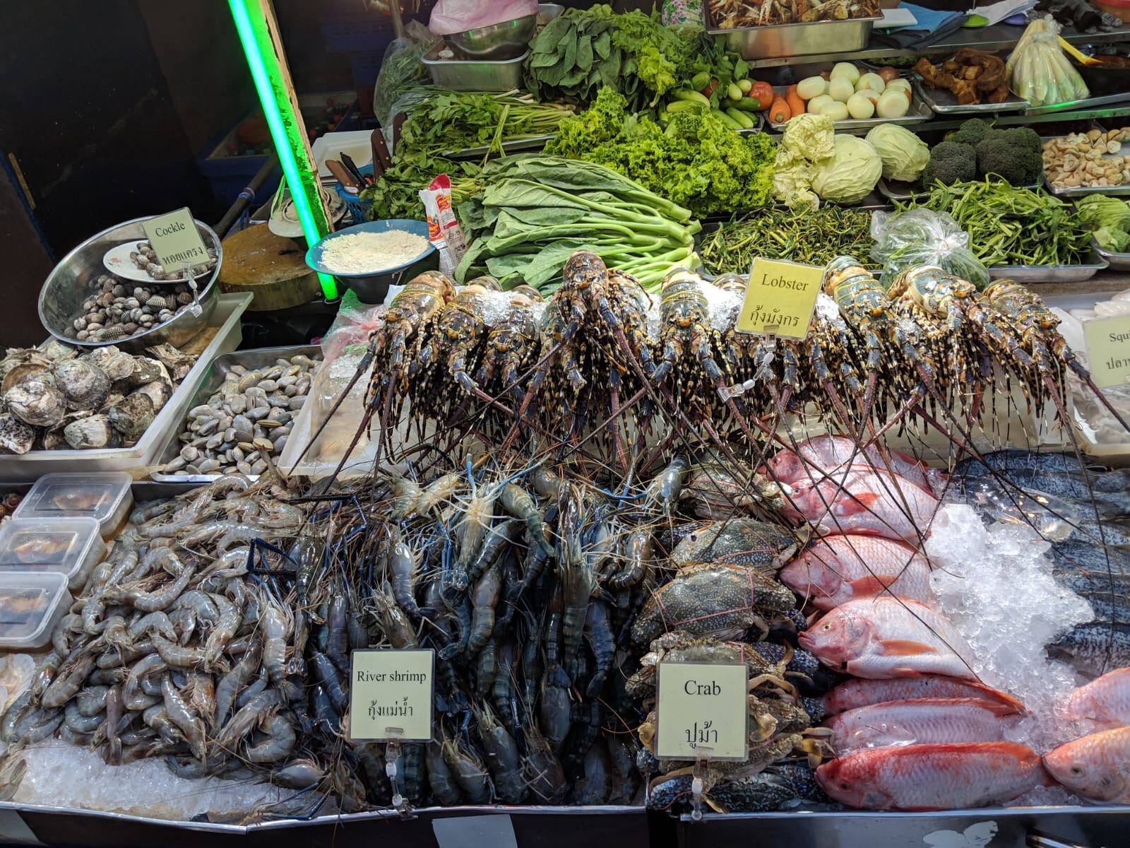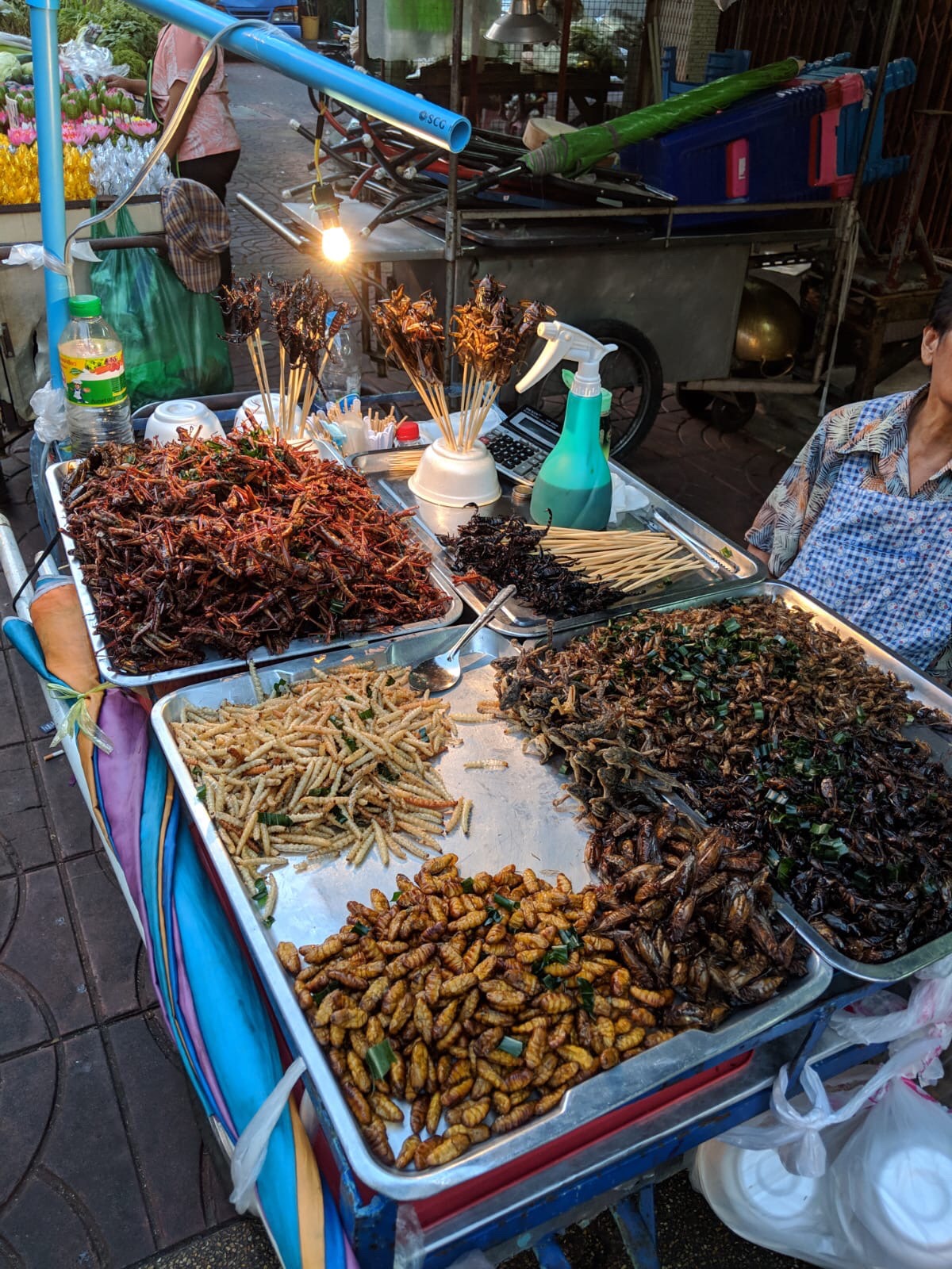 Zum Abendessen ging es Richtung Chinatown. Hier wuseln in kleinen Gassen hunderte von Straßenhändlern, Shops und Touristen. Die Hauptstraße ist geschmückt mit chinesischen Leuchtschildern, die Nachts richtig zur Geltung kommen und das typische Reiseführer-Bild wiedergeben. Die Yaowarat Rd schlängelt sich durch die Innenstadt von Bangkok – übrigens die hiesig einzige geschwungene Straße. Sie wurde ursprünglich am Fluss gebaut um die über Wasser transportierten Waren besser abladen zu können.
