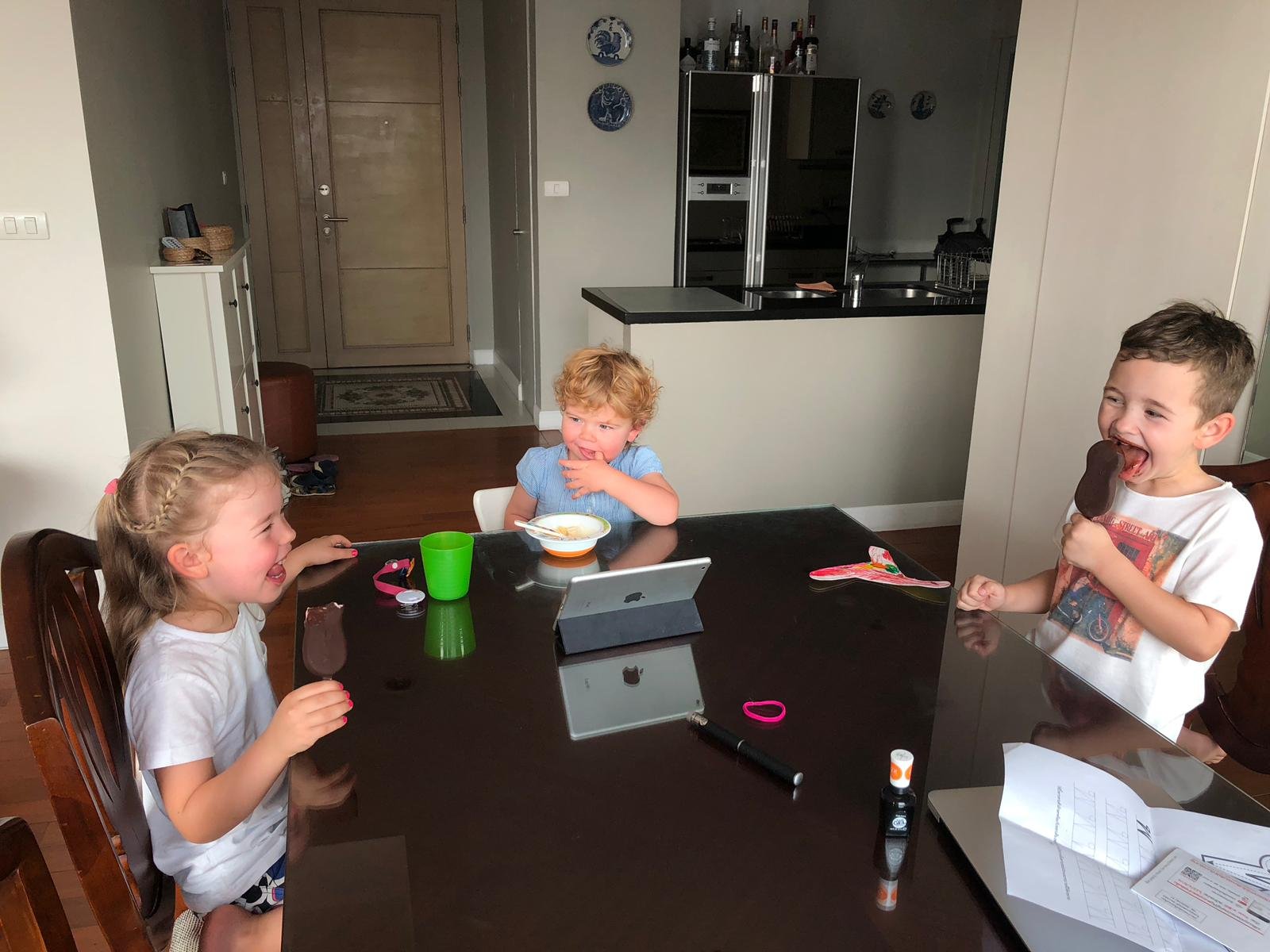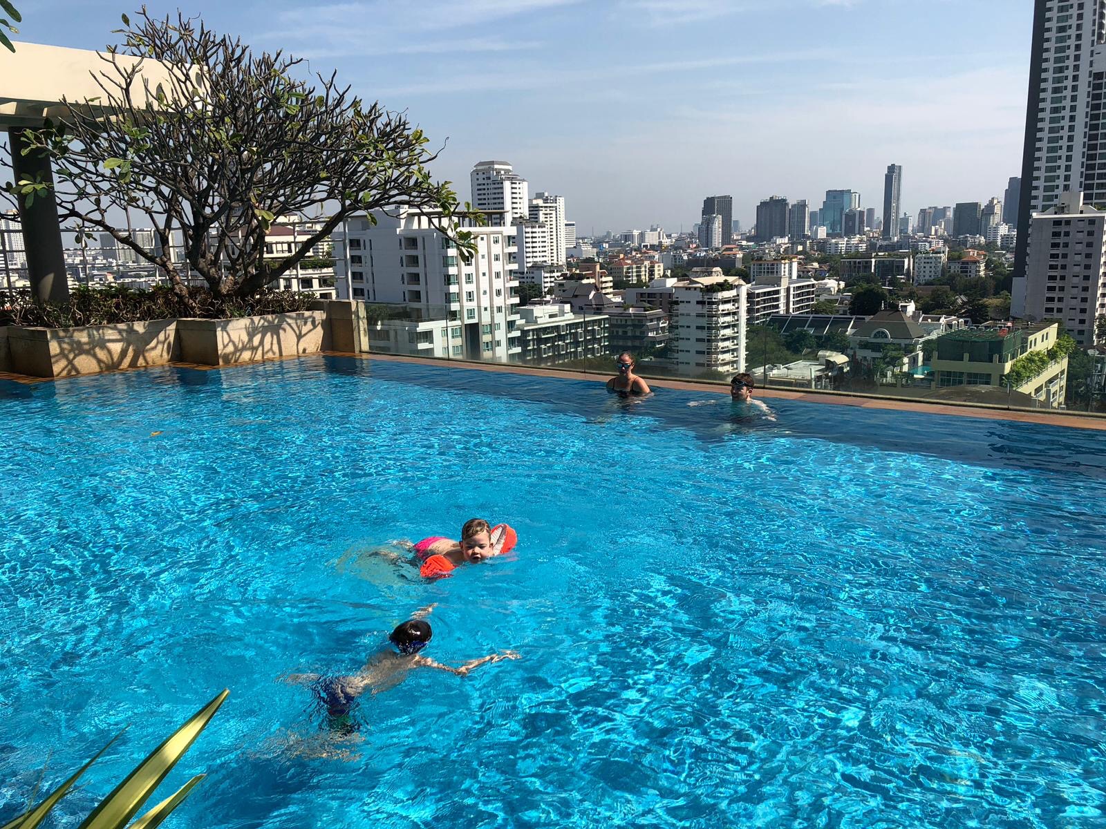 Heute starteten wir mit einer ausgiebigen Poolrunde in Milos Wolkenzimmerhaus. Der Blick über die Silhouette der gigantischen Stadt macht das Plantschen zum Luxusschwimmen. Erfrischt konnten dann die Kinder spielen und wir mit Angi ein bisschen gemeinsame Zeit verbringen. René musste leider schon früh morgens nach Saigon.