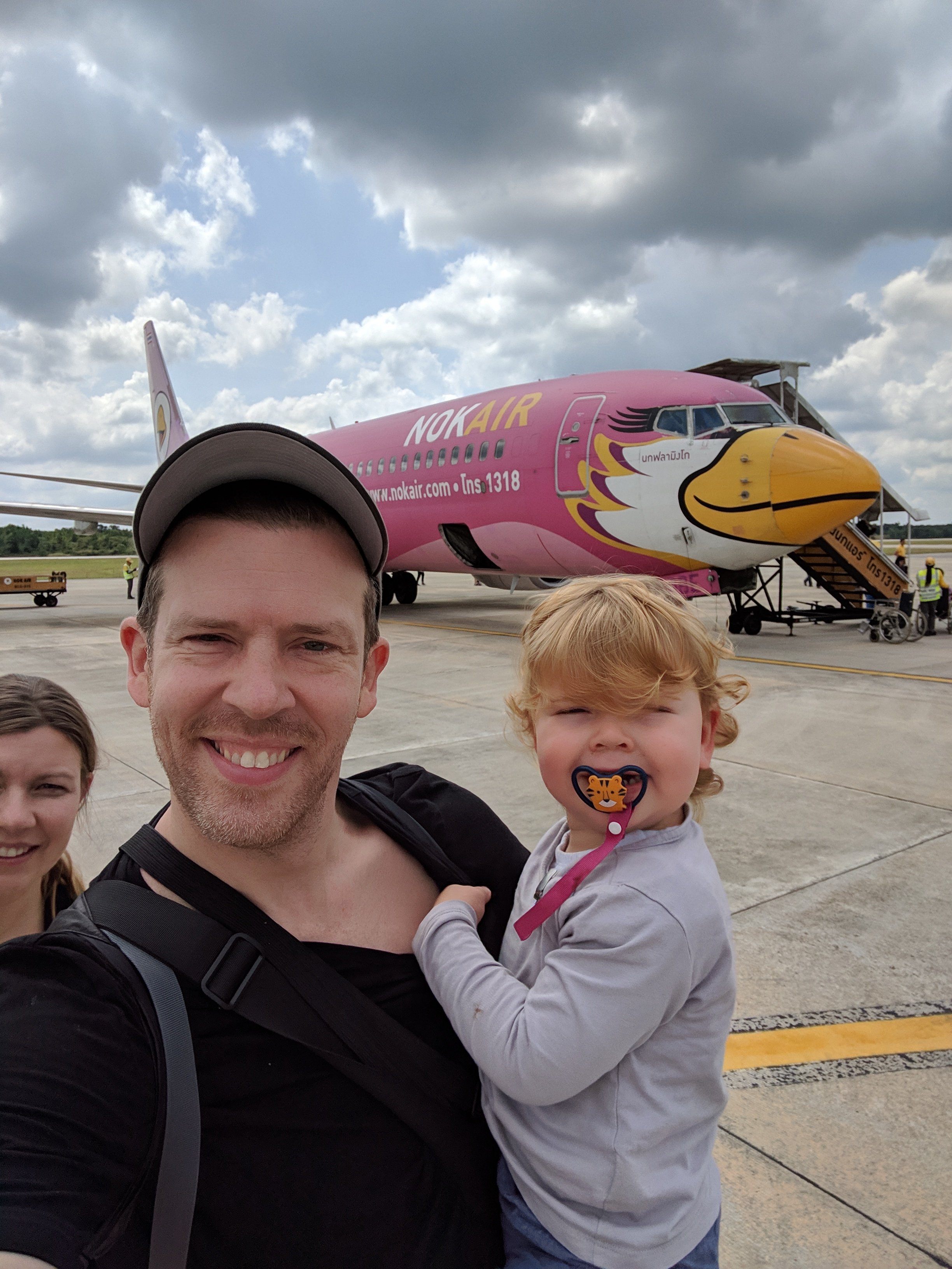 Ein bißchen anders traveln wir mit Kindern ja dann doch und so haben wir nicht den üblichen Weg gewählt und nur den Flug in die nächstgelegene Stadt gebucht, sondern uns mal die Variante „entspannt“ – die gesamte Route bis nach Koh Bulone Lae – gegönnt. Entspannt nur in Anführungszeichen, da der Tag doch etwas hetzig anfing: vergessen den Wecker zu stellen, Milo hat doch länger geschlafen als erwartet und uns dann leicht verspätet geweckt, ein etwas schwer zu bekommendes Grab-Taxi und das übliche Bangkoker Verkehrschaos. 2 min vor Schalterschluss das Gepäck aufgegeben und mit den Kindern und gefühlt 1 Tonne Technik durch die Sicherheitskontrolle. Um so entspannter ging es dann weiter. Erst ein einstündiger Flug mit dem NOK Flamingo bis Trang, dann direkt in den Bus zum Pakbara Pier und zum Abschluss eine Stunde mit dem Speedboot vorbei an einer Traumkulisse durch die Andamansee. Reisen kann durchaus schlechter sein. Um 14:00 auf der Insel und direkt im Paradies gelandet. Wir haben ein wunderschönes kleines Hüttchen am Traumstrand mit Badewannentemperatur und ausgezeichnetem Essen. Kurz gesagt: ‚Mehr geht nicht‘!